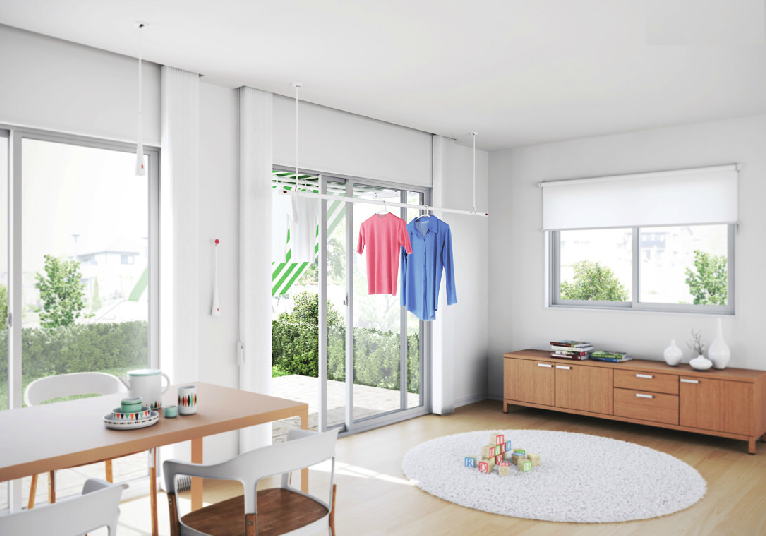 手動式昇降型の天井取付屋内物干しのエアーシリーズ