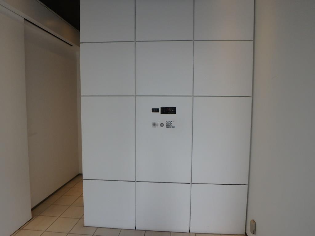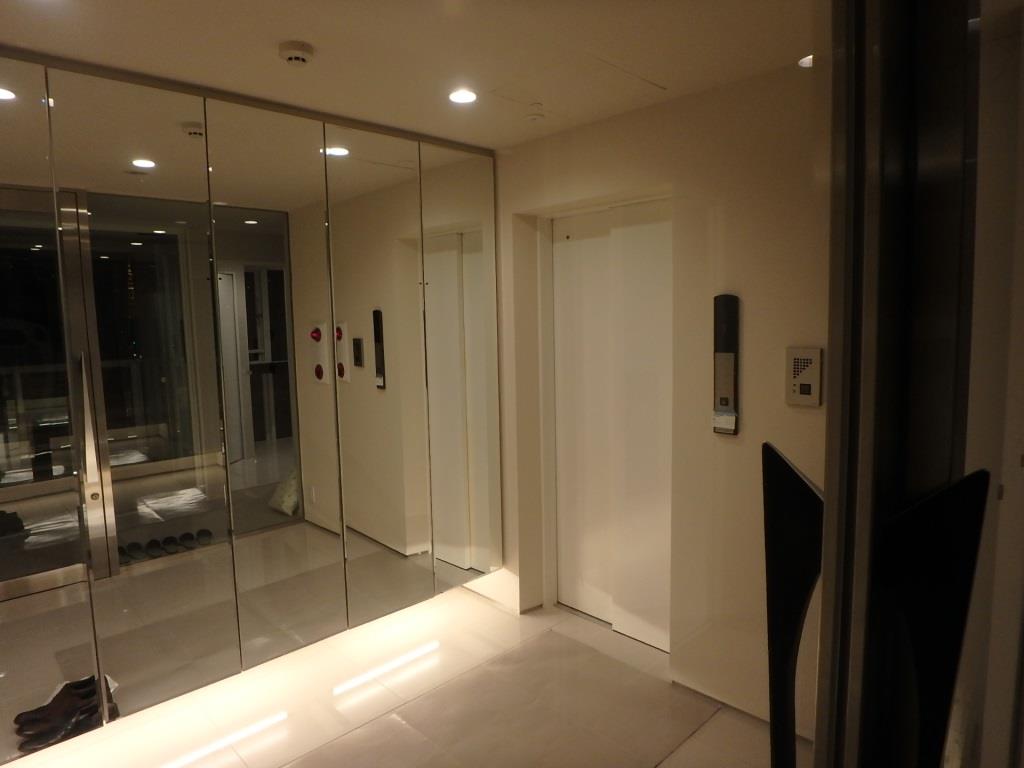 鏡面調のラミネートパネルで囲まれた”デザイナーズ設計のマンションエントランス”