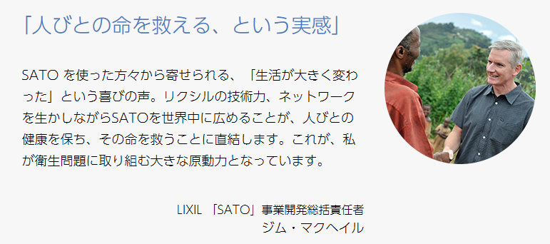 ちなみに、このLIXIL社が開発した[SATO (Safe Toilet/安全なトイレ)]を用いた
