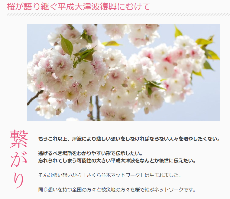 この[桜並木プロジェクト]は、今回の2万人あまりの死者・行方不明者の被害を