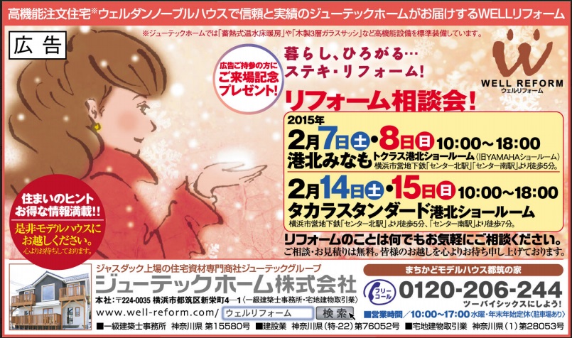 【広告掲載しました!!】 広報よこはま 都筑区版 2月号 WELLリフォームの広告を掲載しました!!