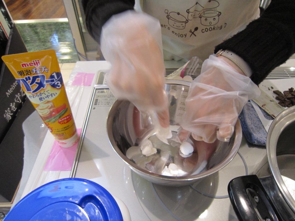 3. 最後にラップに乗っけて「型つくり…」の作業は、IHクッキングヒーターの《ガラストップ》の