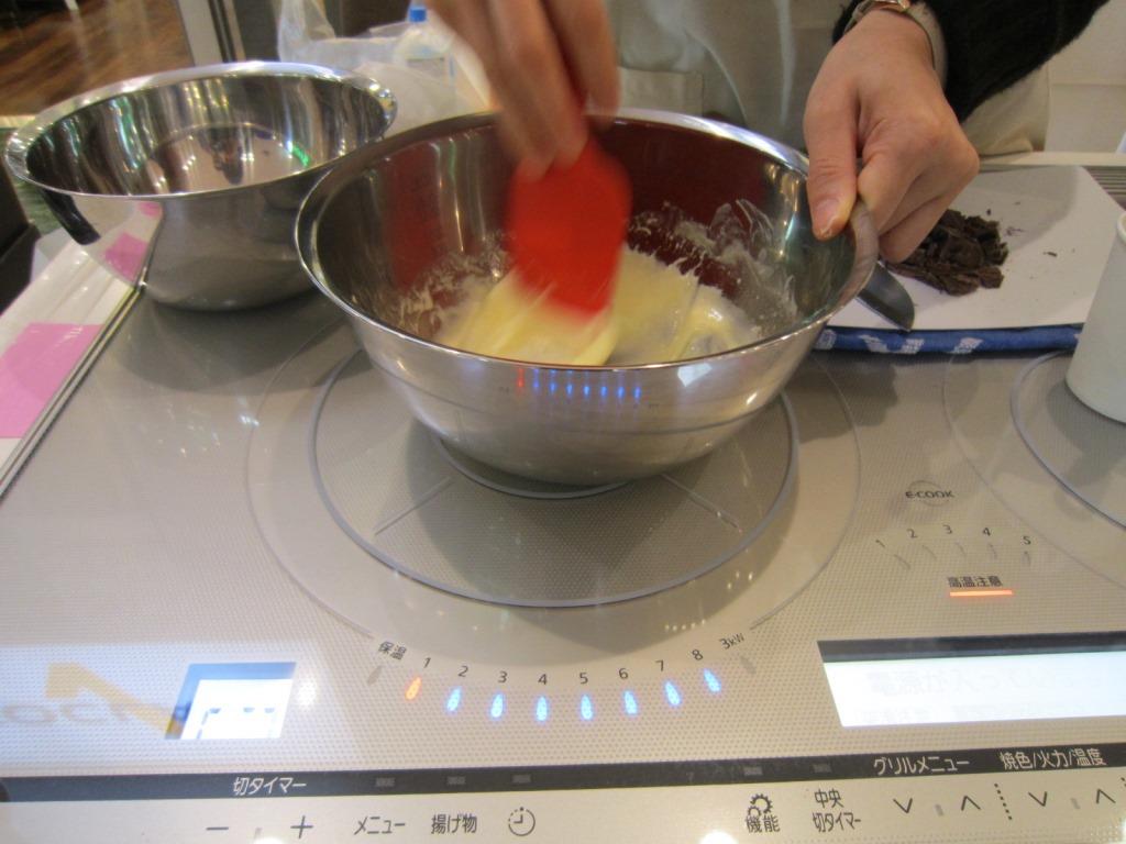 「IHクッキングヒーター」を使用して!! まんべんなく混ぜます。