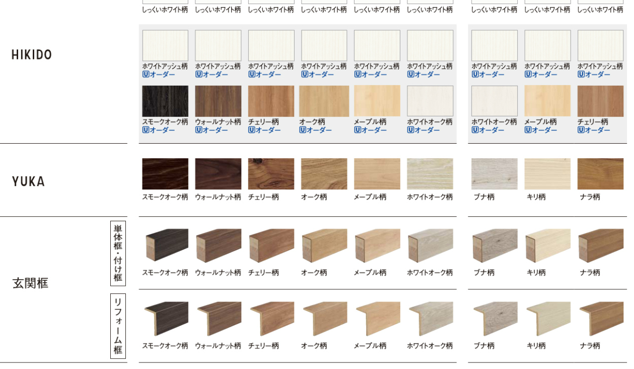 最近のリフォームのほんの一例だけでも、こんなにいっぱいの種類のフローリングが