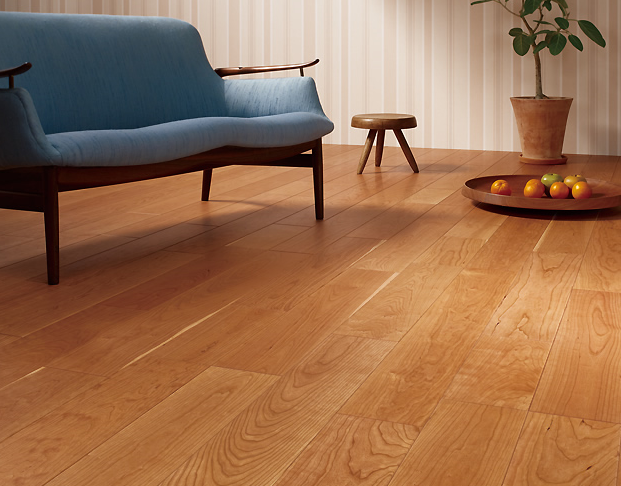 同じチェリー系の[ブラックチェリー]色より明るく設定されつつ、最近のフローリングで