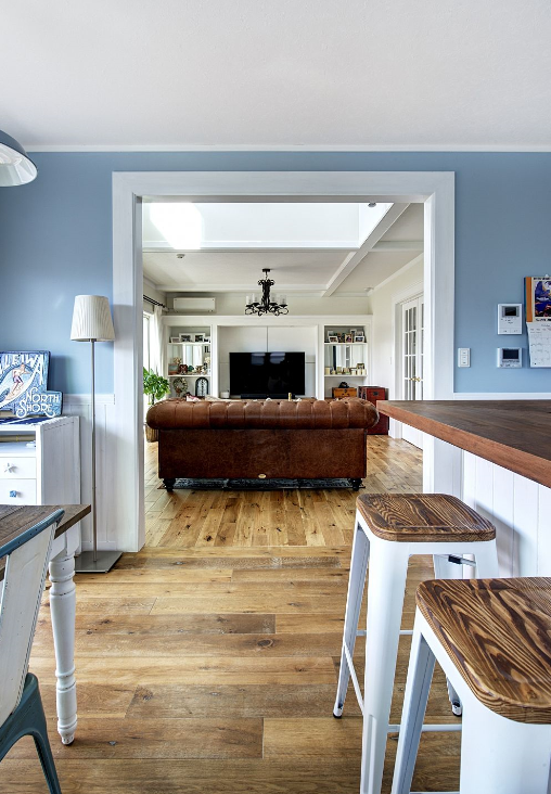 ちょっと見た目の荒々しいフローリング材を使用して、アンティーク感を前面に