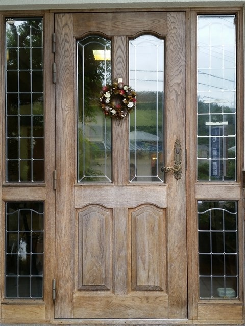 オーク材が綺麗で重厚感ある木製玄関ドアですね!!