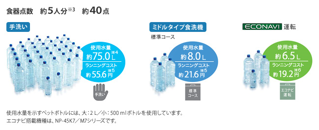 1回の食器洗いでの水量の差は『あの大きいペットボトルで36.5本の差』