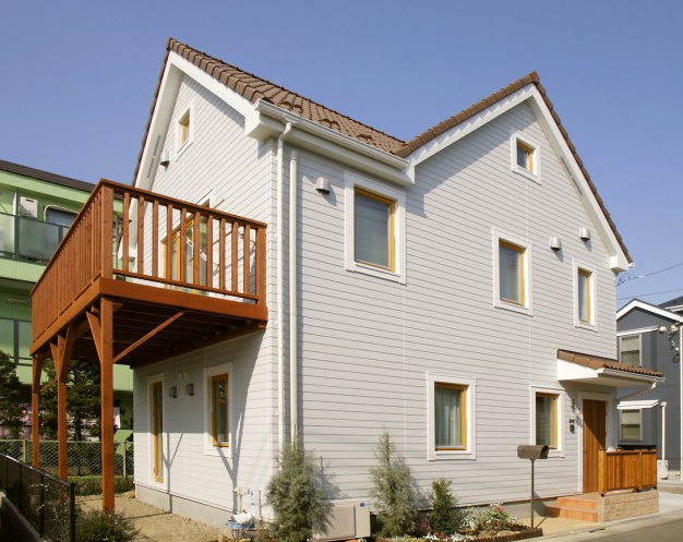 スカンジナビアンスタイルの[ウッドバルコニー]と外壁の[ウッドサイディング]に