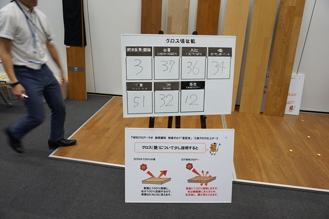 パナソニック社の[WAT]技術のフローリングも上のサンプルの写真のフローリングも