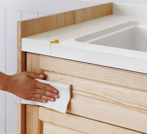 触ると天然木の質感を残したまま、調味料や汚れが付いても含浸しないので