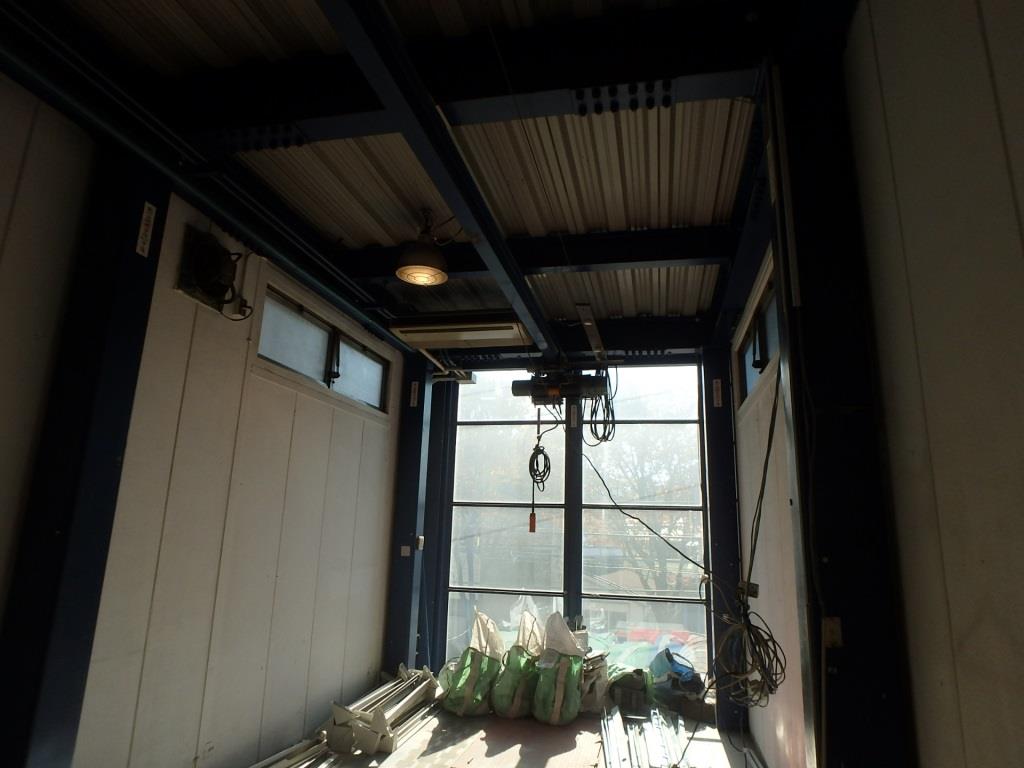 3F天井には1Fへ荷卸しする為の『クレーン』が設置されており