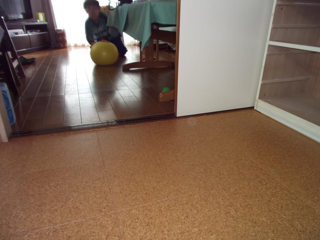 ・キッチン(リビング)のコルクフローリング貼り