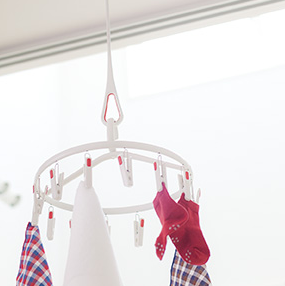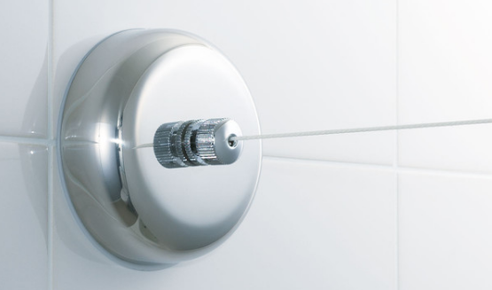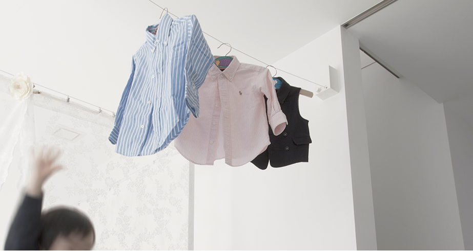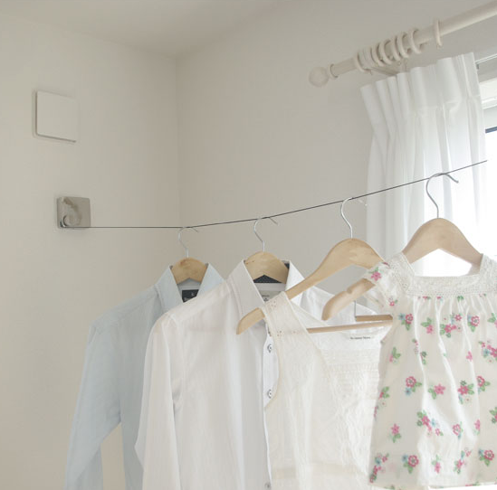 ”必要な時だけワイヤーを伸ばして、パッと手軽に洗濯物を干せる室内物干し”