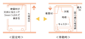 上下稼働機能を利用して、天井ピッタリで設置可能!!(キャスターはロック)