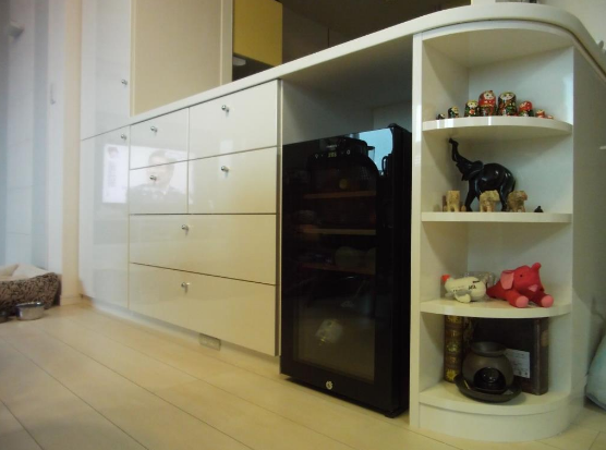 ワインセラー横の楕円の部分は、狭くなってしまった行動動線を少しでも