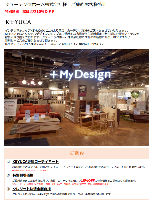インテリアショップ「ケユカ(KEYUCA)」とジューテックホームの提携の