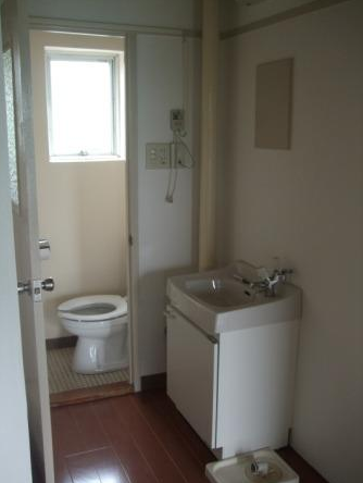 北面独特の暗くちょっと湿っぽい空間に、手が洗えれば程度でチョコンとある
