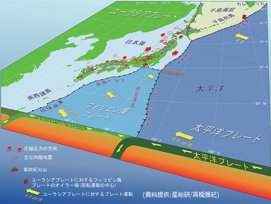 その4枚のプレートの押し合いによって隆起した山が日本列島!?(焦)