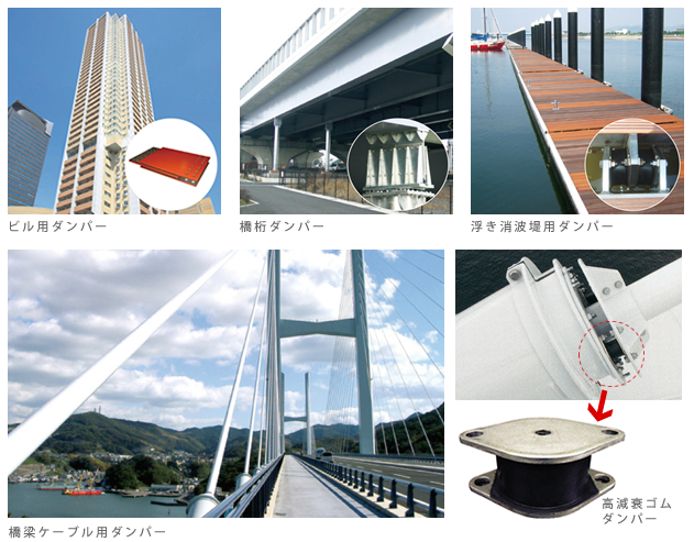 その卓越した[ゴム技術]を利用しての、ビル、マンション、橋梁などの制震ダンパー