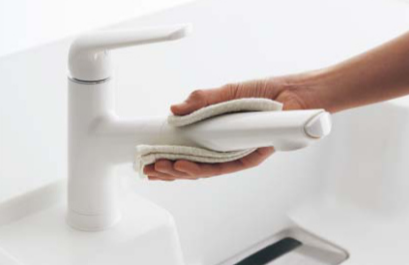 あの水栓金具独特の水アカや朱色のカビ…(泣)