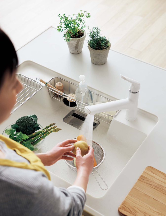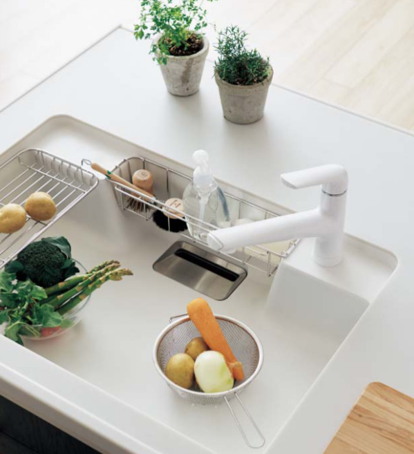 今回のご紹介する新登場の[ラクするーシンク]の特徴は、シンクや水栓金具が