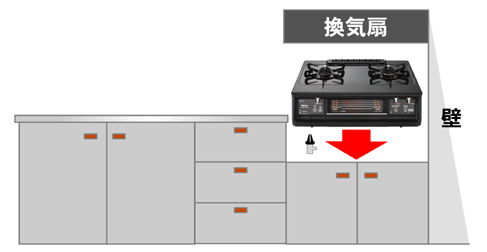 つまり、「ビルトインガスコンロ」とは、現代のシステムキッチンに組み込む