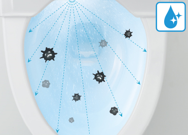 ①トイレ使用前に、自動で便器にミスト(お水)を吹きかけ汚れを落ちやすくします!