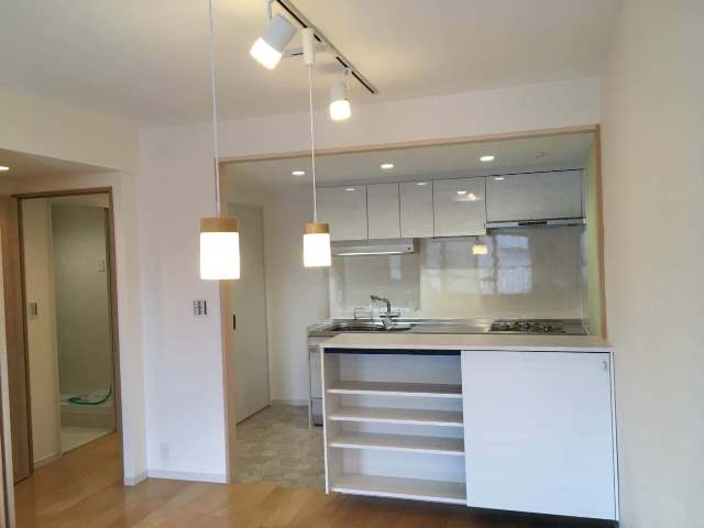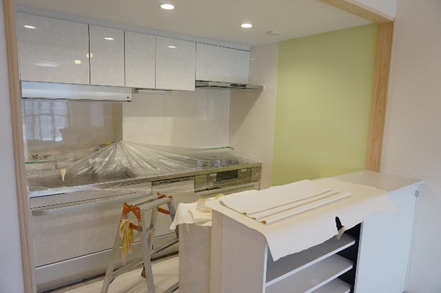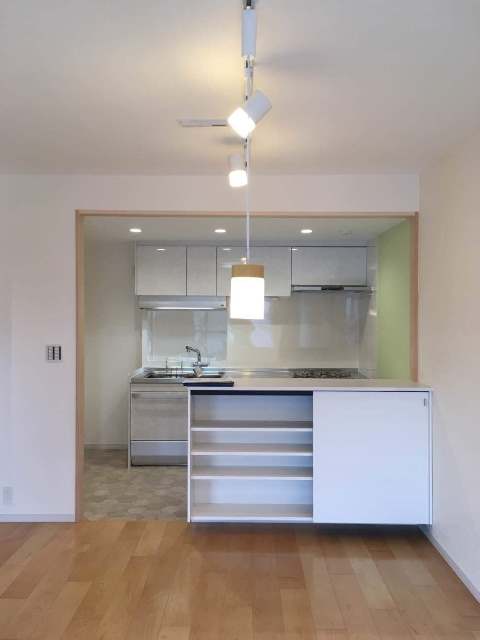 お部屋を分割され昼間から照明をつけて調理をしていたキッチンスペースが
