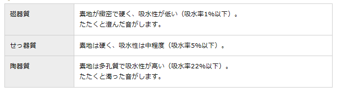 大きな「相違点」は、素地による「吸水率」の違いと「滑りにくいか?」