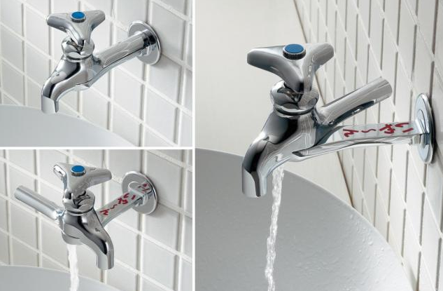 ハンズフリー水栓金具は、タッチレス水栓金具のセンサーに加え、実は吐水口にも