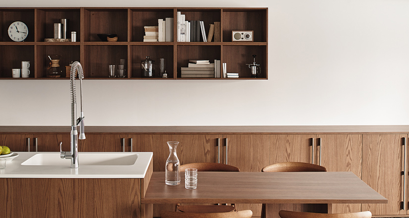 人気のハイグレードキッチンの「リシェルSI」と「システム家具」をコーディネート