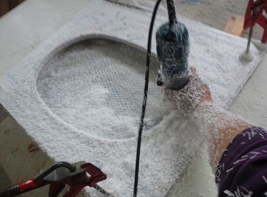せっかく選んだのに、このカウンター材にはこのボウルは無理だった…