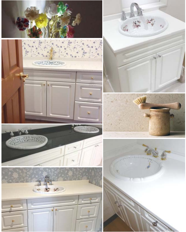 お客様のご選択するカウンター材の素材もFRP強化樹脂、人造大理石から