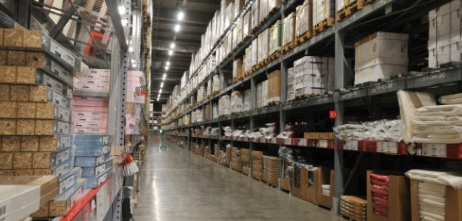 広大な倉庫の中はこんな感じなんです。ところ狭しと積み上げれらたベニア板、石膏ボード、