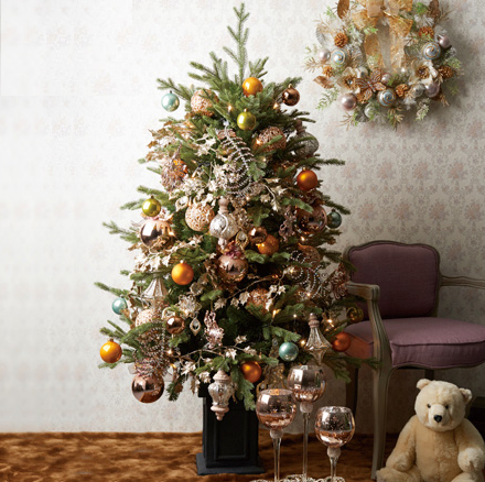 毎年、プロのフラワーコーディネーターにクリスマスツリーの飾りつけをお願いして