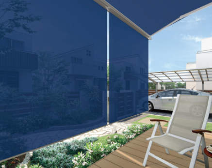 陽射しを遮るオーニングのキャンバスにも、ネイビーブルーを揃えているんですね!!