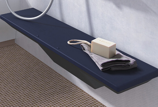TOTO社の横浜みなとみらいショールームにも、「ネイビーブルー色」のカウンターを設置