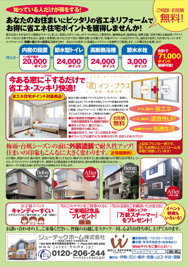 ・内窓(1.8mx1.8) 20.000P ・節水型トイレ 24,000p