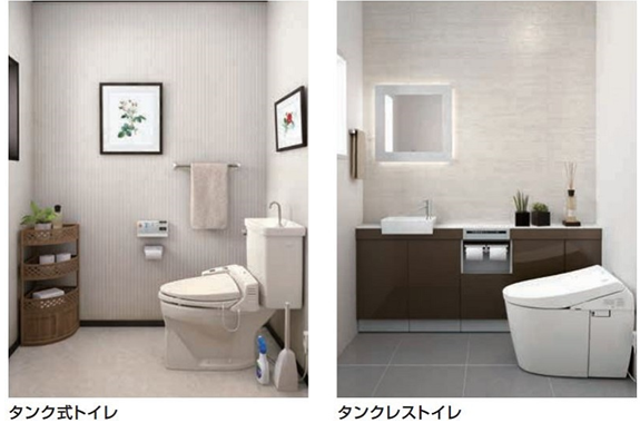 タンクレストイレと一般的なトイレ(タンク式トイレ)の違いは、デザインや