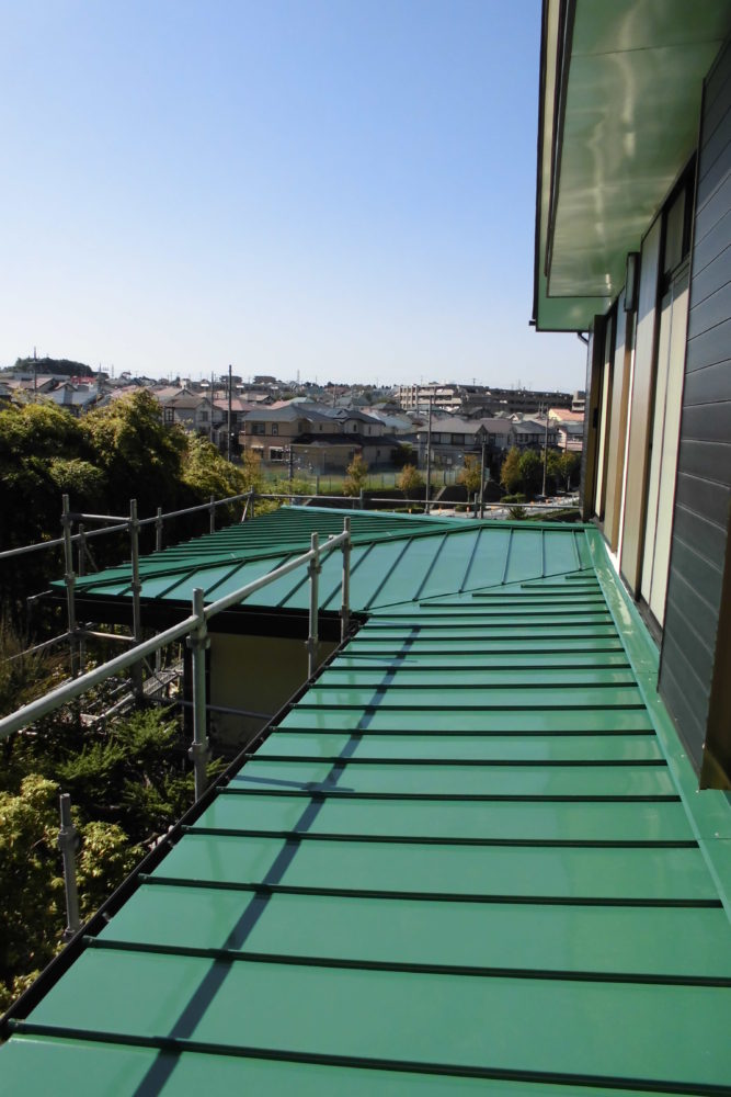 ベランダを思い切って撤去してしまい、ベランダより風雨に強い「屋根」に変更して