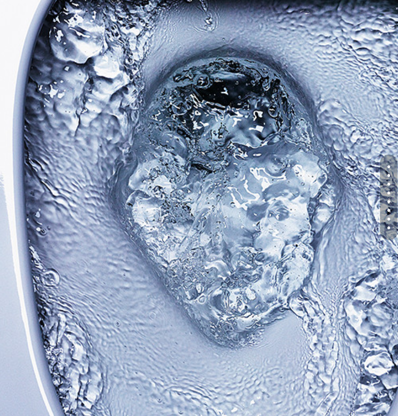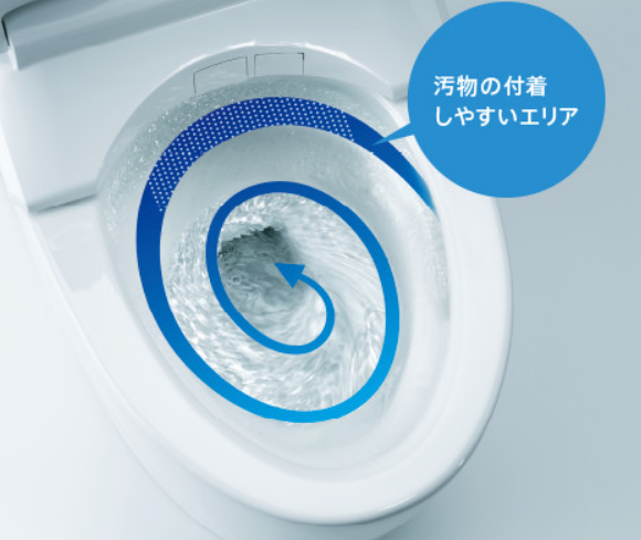 実は便器のフチなし形状は便器の形状だけの進化ではなく、洗浄水の水の流し方