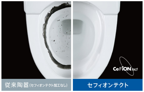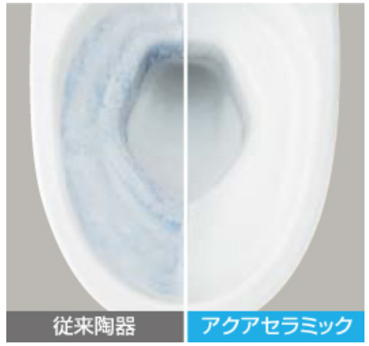 もうちょっと簡単にご説明するとトイレ内(陶器)へ汚物や汚れ、細菌がへばり付いてしまわない