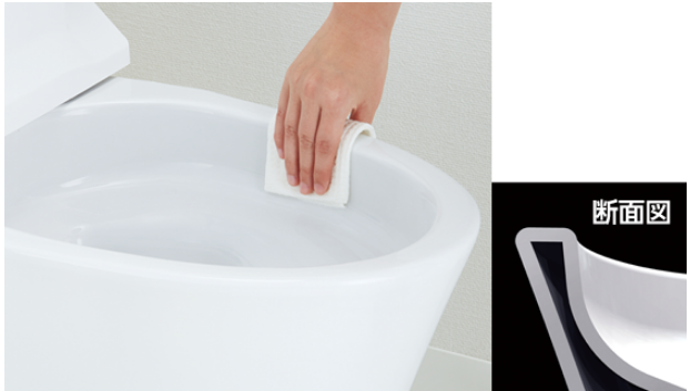 近年のトイレでは元来汚れが溜まるフチ自体を無くしたディティールのトイレが