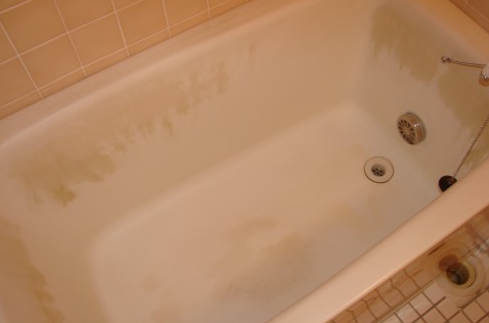 数年が経過すると… あれ?? 浴槽の中に色が違うところがある??