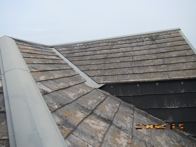 昨今の建築で一般的に使用されている屋根材の「スレート瓦」のリフォーム前の写真。