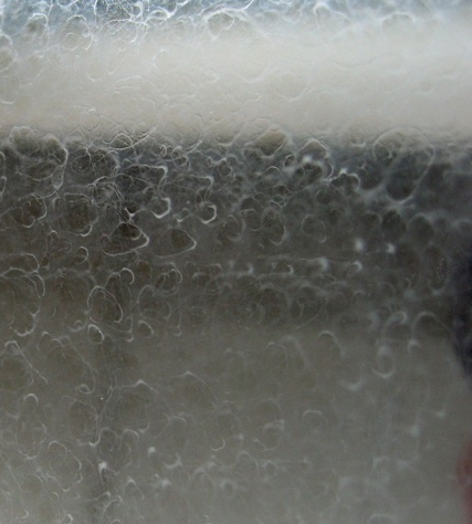 水道水に含まれるスケール(炭酸カルシウム)と結合して密着していることが多く