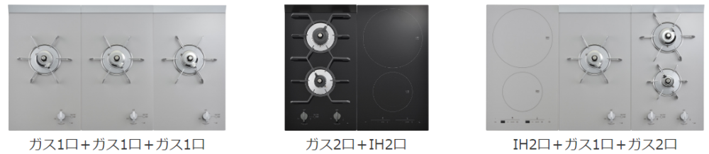 下のコンロは「3つ」のガス式コンロと「2つ」のIH式コンロなんです!!
