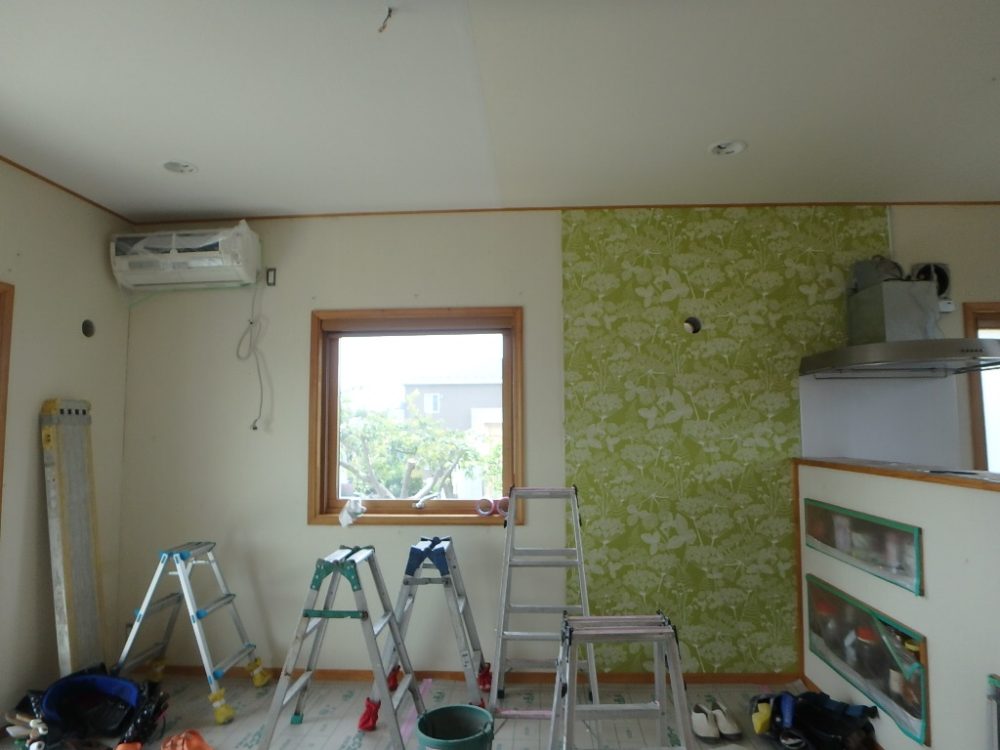 お住まいをご新築される際は、エアコンを設置する前に壁紙(クロス)の工事を行っている