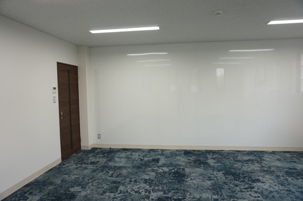 壁の一面が、マグネットも使えるホワイトボードを兼ねた壁材で仕上げられております!!